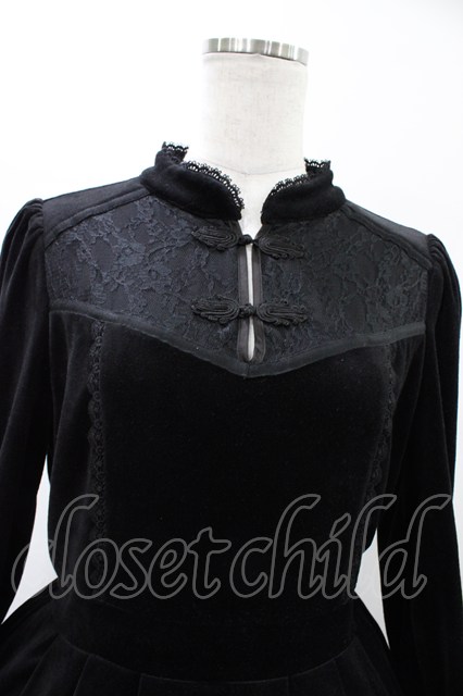 axes femme / チャイナ風ベロアワンピース M ブラック H-26-02-12-1046-AX-OP-NS-ZH