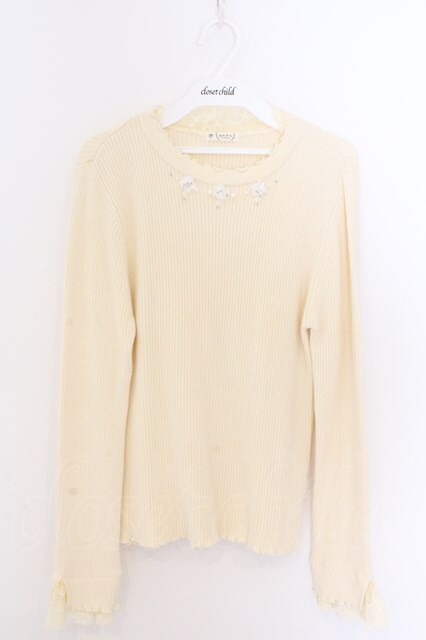 axes femme / ビジューフラワーニット M キナリ O-26-02-10-033-AX-TO-OW-OS