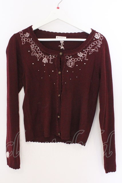 axes femme / 刺繍カーディガン M ワイン O-26-02-10-036-AX-TO-OW-OS