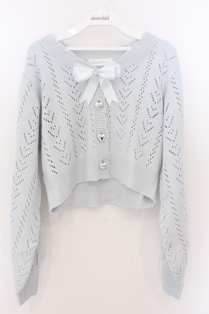 DearMyLove / キラキラハート編み柄ショートカーディガン M~L サックス O-26-02-10-058-EL-TO-OW-OS [2100080000074331-O-26-02-10-058-EL-TO-OW-OS]