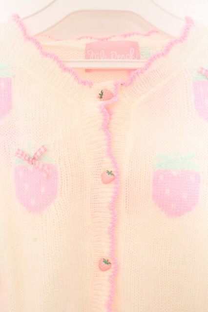 Nile Perch / いちご編み込みカーディガン シロ×ピンク O-26-02-10-064-LO-TO-OW-OS