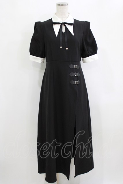EATME / ベルテッドバイカラーワンピース M ブラック H-26-02-15-010-LO-OP-NS-ZH