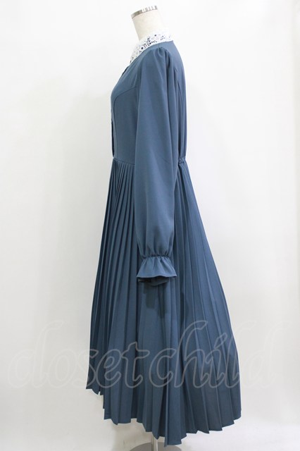 m petit by misako / AM*レースエリプリーツワンピース L ブルー H-26-02-15-011-LO-OP-NS-ZH