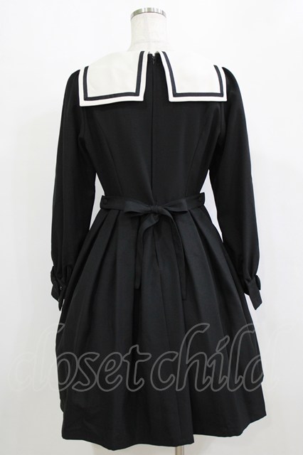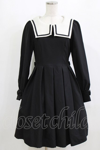 Innocent World White / スクエアーカラーワンピース M/92cm丈 ブラック H-26-02-15-023-IW-OP-NS-ZH