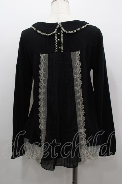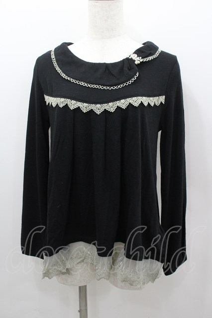 axes femme / パールリボン襟長袖トップス 黒Xアイボリー I-26-02-11-049-AX-TO-SA-ZI