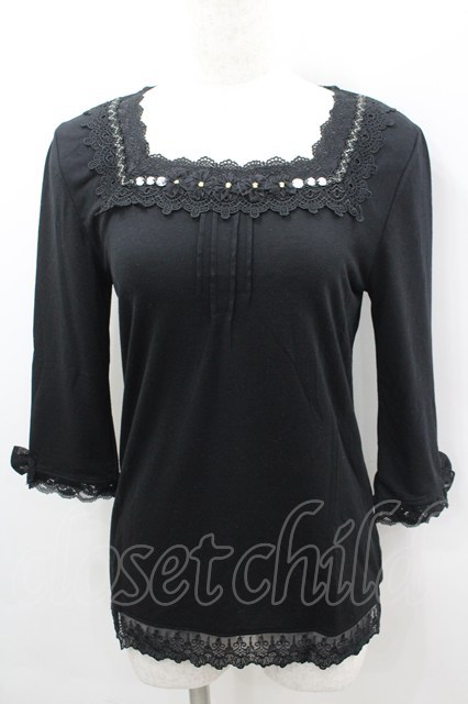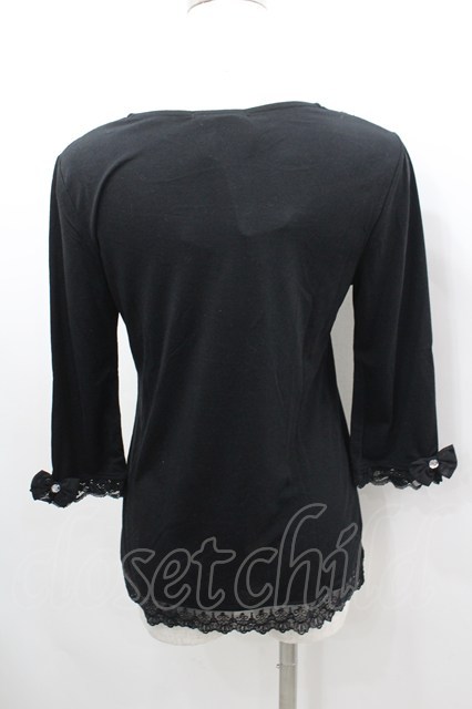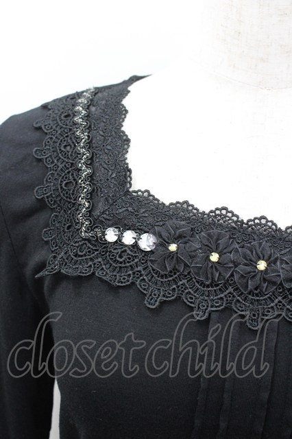 axes femme / レースビジュー長袖カットソー 黒 I-26-02-11-051-AX-TO-SA-ZI