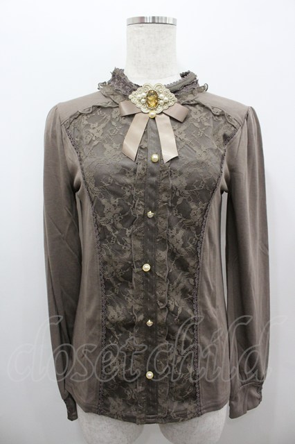 axes femme / ブローチ付スタンド襟PO M モカ I-26-02-11-012-AX-TO-SA-ZI [2100060000039962-I-26-02-11-012-AX-TO-SA-ZI]
