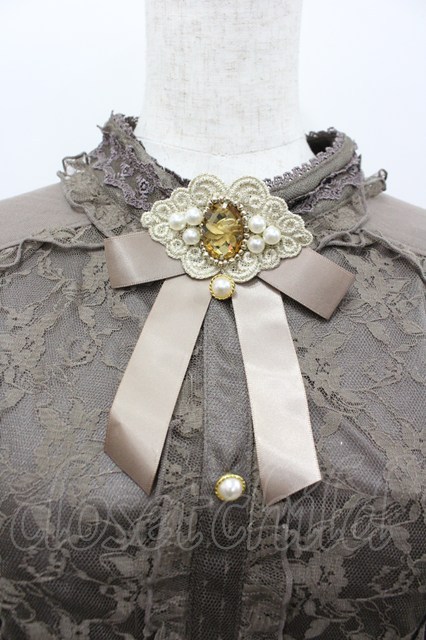 axes femme / ブローチ付スタンド襟PO M モカ I-26-02-11-012-AX-TO-SA-ZI