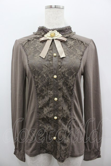 axes femme / ブローチ付スタンド襟PO M モカ I-26-02-11-013-AX-TO-SA-ZI [2100060000039961-I-26-02-11-013-AX-TO-SA-ZI]