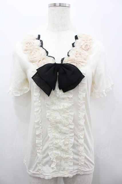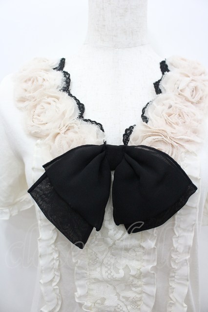 axes femme / ローズモチーフフリルトップス アイボリーX黒 I-26-02-11-017-AX-TO-SA-ZI