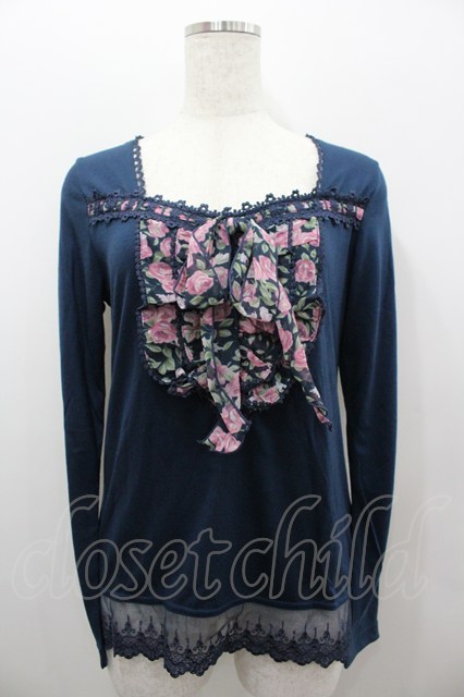 axes femme / 薔薇シフォンリボンカットソー 青Xピンク I-26-02-11-032-AX-TO-SA-ZI [2100060000040009-I-26-02-11-032-AX-TO-SA-ZI]