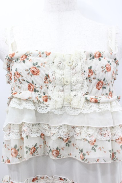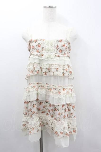 axes femme / ローズプリントフリルシフォンジャンパースカート アイボリーX赤 I-26-02-11-096-AX-OP-SA-ZI