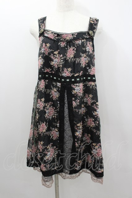 axes femme / フラワーブーケシフォンプリントジャンパースカート 黒Xピンク I-26-02-11-097-AX-OP-SA-ZI [2100060000039928-I-26-02-11-097-AX-OP-SA-ZI]