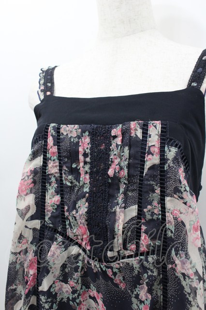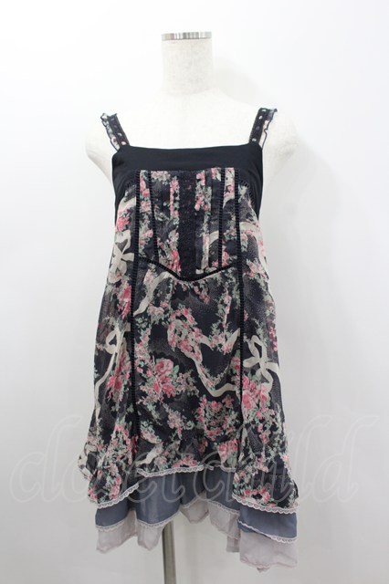 axes femme / ローズリボンプリントシフォンキャミワンピース ネイビーXピンクXアイボリー I-26-02-11-100-AX-OP-SA-ZI [2100060000039927-I-26-02-11-100-AX-OP-SA-ZI]