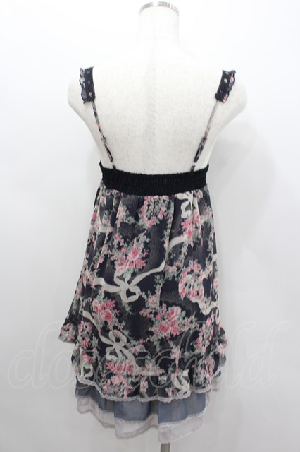 axes femme / ローズリボンプリントシフォンキャミワンピース ネイビーXピンクXアイボリー I-26-02-11-100-AX-OP-SA-ZI