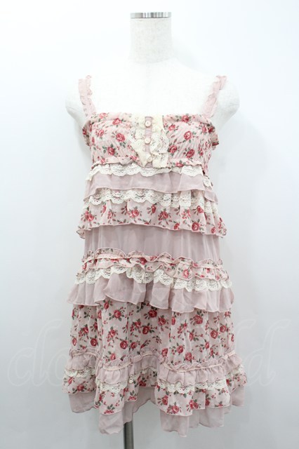 axes femme / ローズプリントフリルシフォンジャンパースカート M アワピンク I-26-02-11-101-AX-OP-SA-ZI