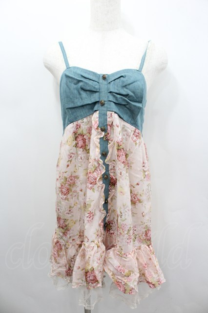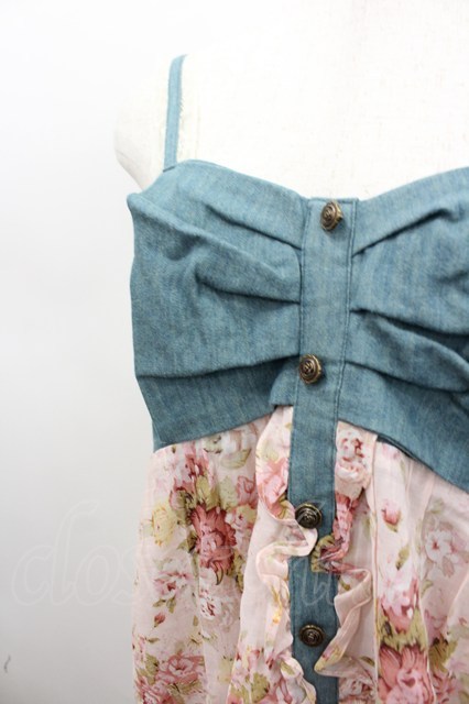 axes femme / デニム切り替えフラワーチュニ M アワピンク I-26-02-11-109-AX-OP-SA-ZI