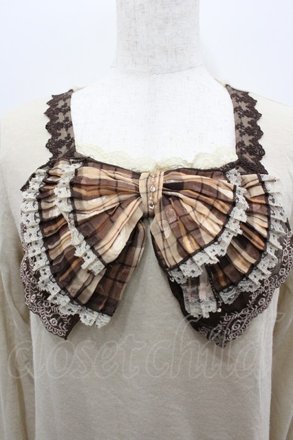 axes femme / チェックBIGリボンカットソー アイボリーXブラウン I-26-02-11-033-AX-TO-SA-ZI
