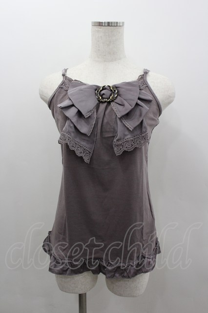 axes femme / サテンbigリボンキャミソール M チャコール I-26-02-11-087-AX-TO-SA-ZI