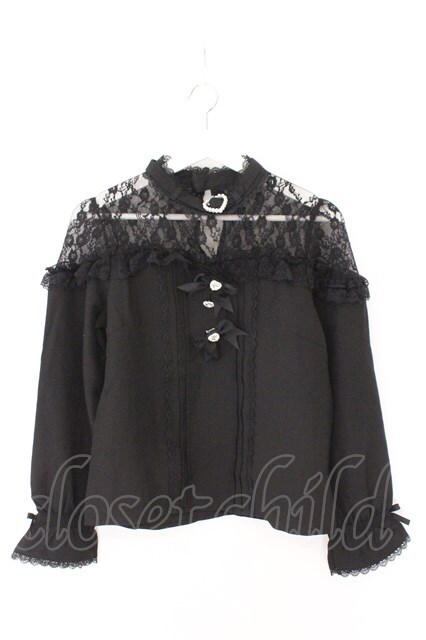 DearMyLove / ハートビジューリボンオフショル風レースブラウス M クロ O-26-02-12-1014-EL-BL-OW-OS [2100080000074357-O-26-02-12-1014-EL-BL-OW-OS]