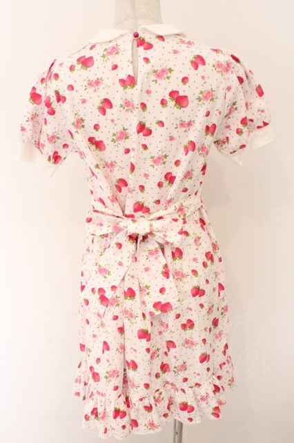 Nile Perch / ヨーク切り替えいちご柄ワンピース シロ×ピンク O-26-02-12-1016-LO-OP-OW-OS