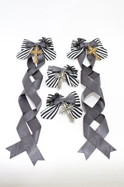 LOTUS ribbon / ツインテールリボンバレッタ ブラック H-26-02-13-1003-EL-ZA-NS-ZH