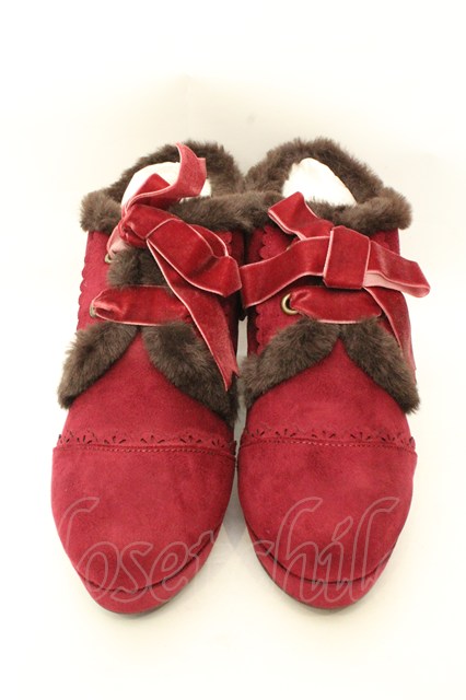 axes femme / 刺繍入りファーブーティー L ワイン O-26-02-12-011-AX-SH-OW-OS