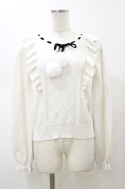 evelyn / ファーリボンフリルニット オフホワイト H-26-02-13-070-LO-TO-KB-ZH [2100030000086417-H-26-02-13-070-LO-TO-KB-ZH]