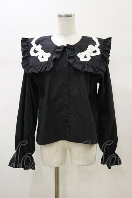 merry jenny / ribbonフリルカラーブラウス ブラック H-26-02-13-032-LO-BL-KB-ZH [2100030000086406-H-26-02-13-032-LO-BL-KB-ZH]