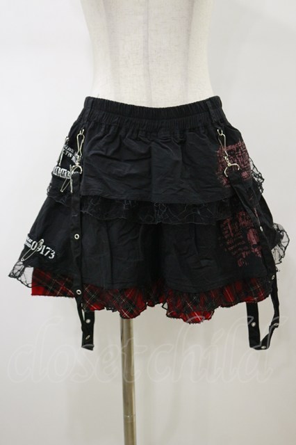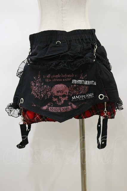 MAD / フラップ付スカート ブラック×レッド H-26-02-13-045-PU-SK-KB-ZH