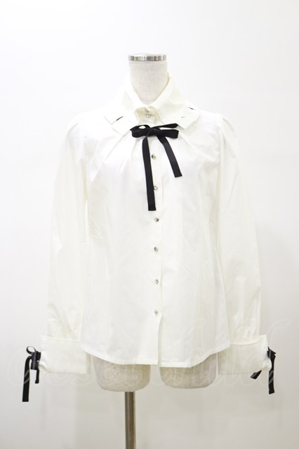 Moi-meme-Moitie / グログランリボンブラウス オフホワイト H-26-02-13-040-MO-BL-KB-ZH [2100030000086391-H-26-02-13-040-MO-BL-KB-ZH]