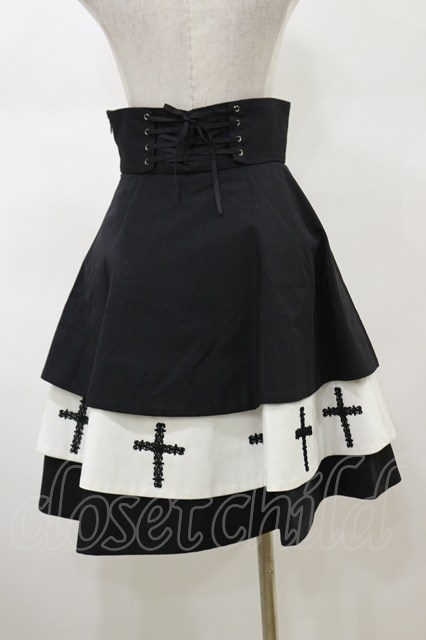 Moi-meme-Moitie / 十字架3段スカート 2 ブラック×ホワイト H-26-02-13-050-MO-SK-KB-ZH