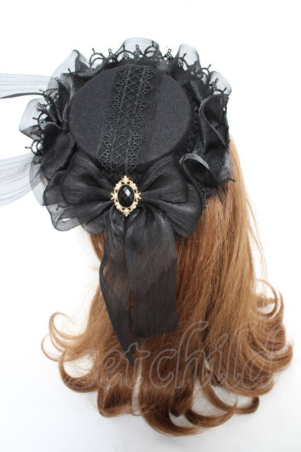 axes femme / リボンフリルミニハット 黒 Y-26-02-13-052-AX-AC-SZ-ZY
