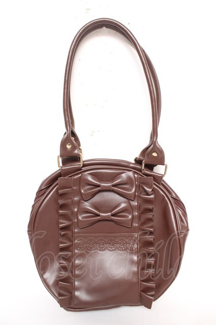 axes femme kawaii / ツインリボンラウンドハンドバッグ 茶 Y-26-02-13-077-AX-BG-SZ-ZY