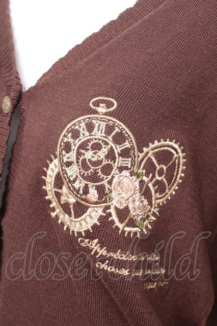 axes femme / 時計×歯車刺繍ニットカーディガン F 茶 Y-26-02-13-095-AX-TO-SZ-ZY