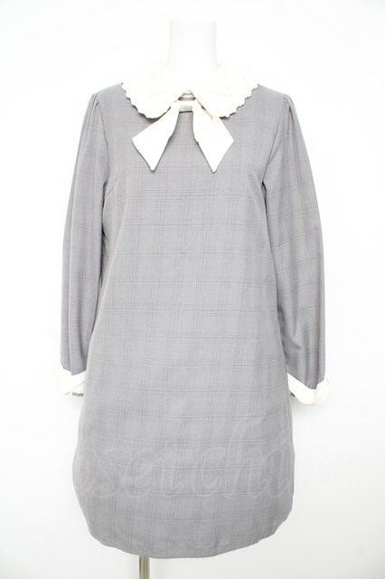 axes femme POETIQUE / レース襟ワンピース M グレー Y-26-02-13-117-AX-OP-SZ-ZY
