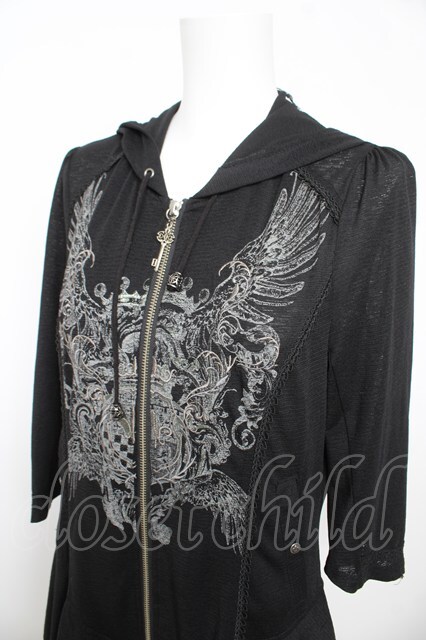 Rozen Kavalier / 羽根プリントパーカーカーディガン 黒 Y-26-02-13-136-OO-TO-SZ-ZY