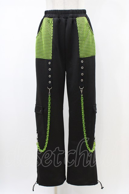 ACDC RAG / ビビッドグルーミー メッシュパンツ ブラック×グリーン H-26-02-14-1021-0-PA-KB-ZH