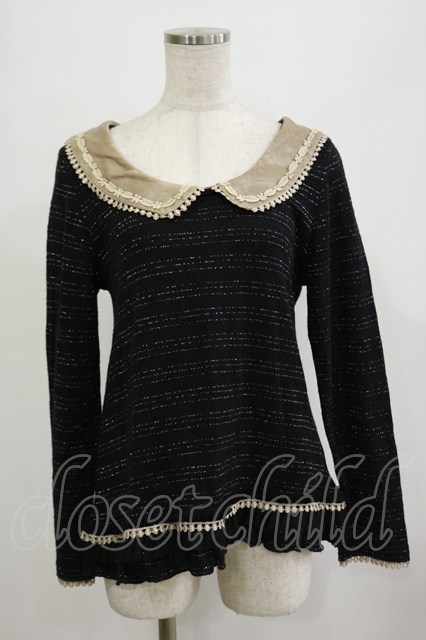 axes femme / ラメボーダーニットトップス M ブラック H-26-02-16-007-AX-TO-NS-ZH