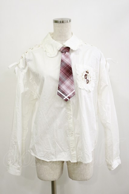 Secret Honey / チェックネクタイ付きブラウス Free オフ/ピンク H-26-02-16-013-CA-BL-NS-ZH