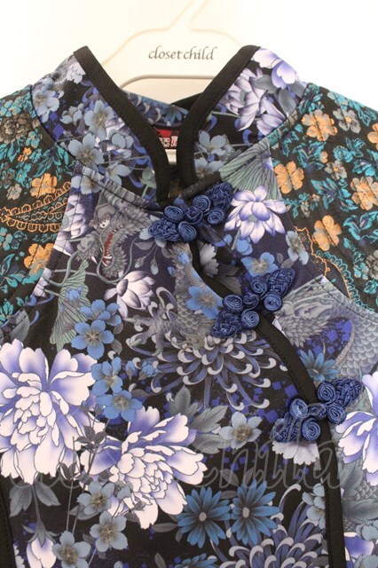 Qutie Frash / 和柄チャイナワンピ ブルー O-26-02-14-043-QU-OP-OW-OS