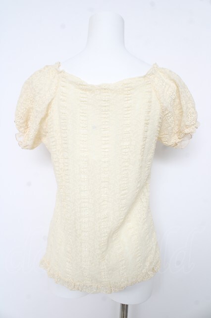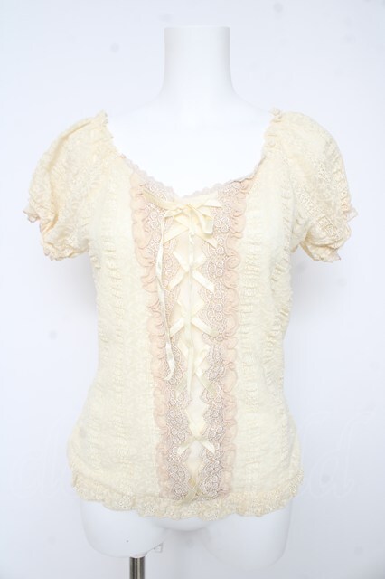 axes femme / フロント編み上げレース半袖トップス M 生成り Y-26-02-15-027-AX-TO-IG-ZY