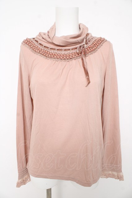 axes femme / パール配色ベロアはしごリボンカットソー M ピンク Y-26-02-15-055-AX-TO-IG-ZY