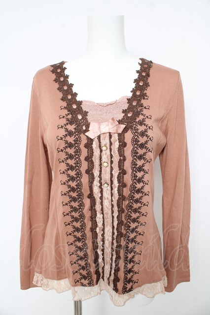 axes femme / 刺繍入りはしごレースカットソー M ピンク Y-26-02-15-062-AX-TO-IG-ZY [2100070000061981-Y-26-02-15-062-AX-TO-IG-ZY]