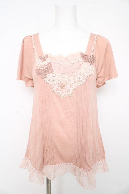 axes femme / フラワーレースTシャツ M ピンク Y-26-02-15-064-AX-TO-IG-ZY