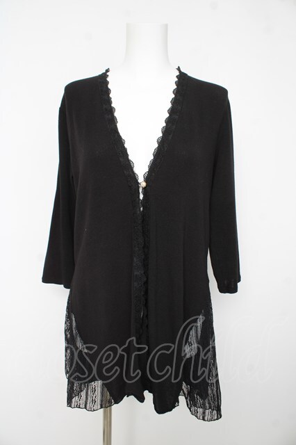 axes femme / レース切替ロングカーディガン M 黒 Y-26-02-15-163-AX-TO-SZ-ZY