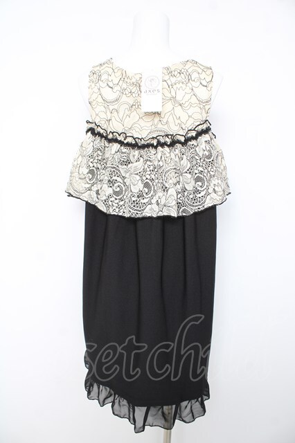 axes femme POETIQUE / 肩開きレース使いカットチュニ M 黒 Y-26-02-15-171-AX-OP-SZ-ZY