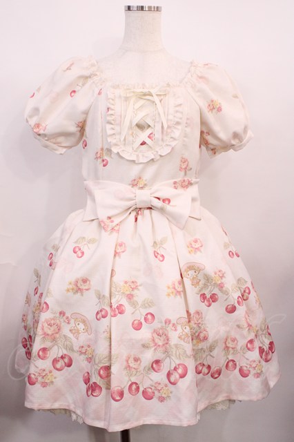 LIZ LISA / マイメロディコラボ第9弾 マイメロチェリー柄ワンピース Free オフ H-26-02-15-1010-LO-OP-NS-ZH