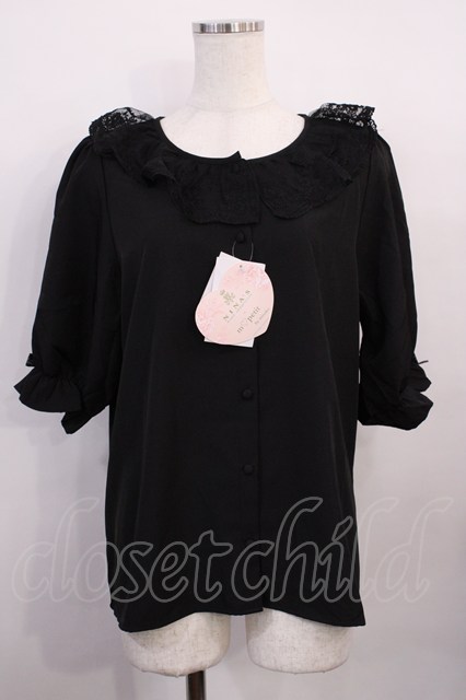 m petit by misako / MSKデシンレースエリブラウス LL ブラック H-26-02-15-1013-LO-BL-NS-ZH [2100030000087352-H-26-02-15-1013-LO-BL-NS-ZH]