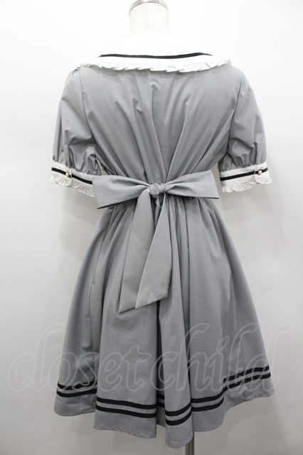 Amavel / リボン付きフリルセーラーカラー半袖ワンピース グレーX白 I-26-02-13-077-CA-OP-SA-ZI [2100060000050994-I-26-02-13-077-CA-OP-SA-ZI]